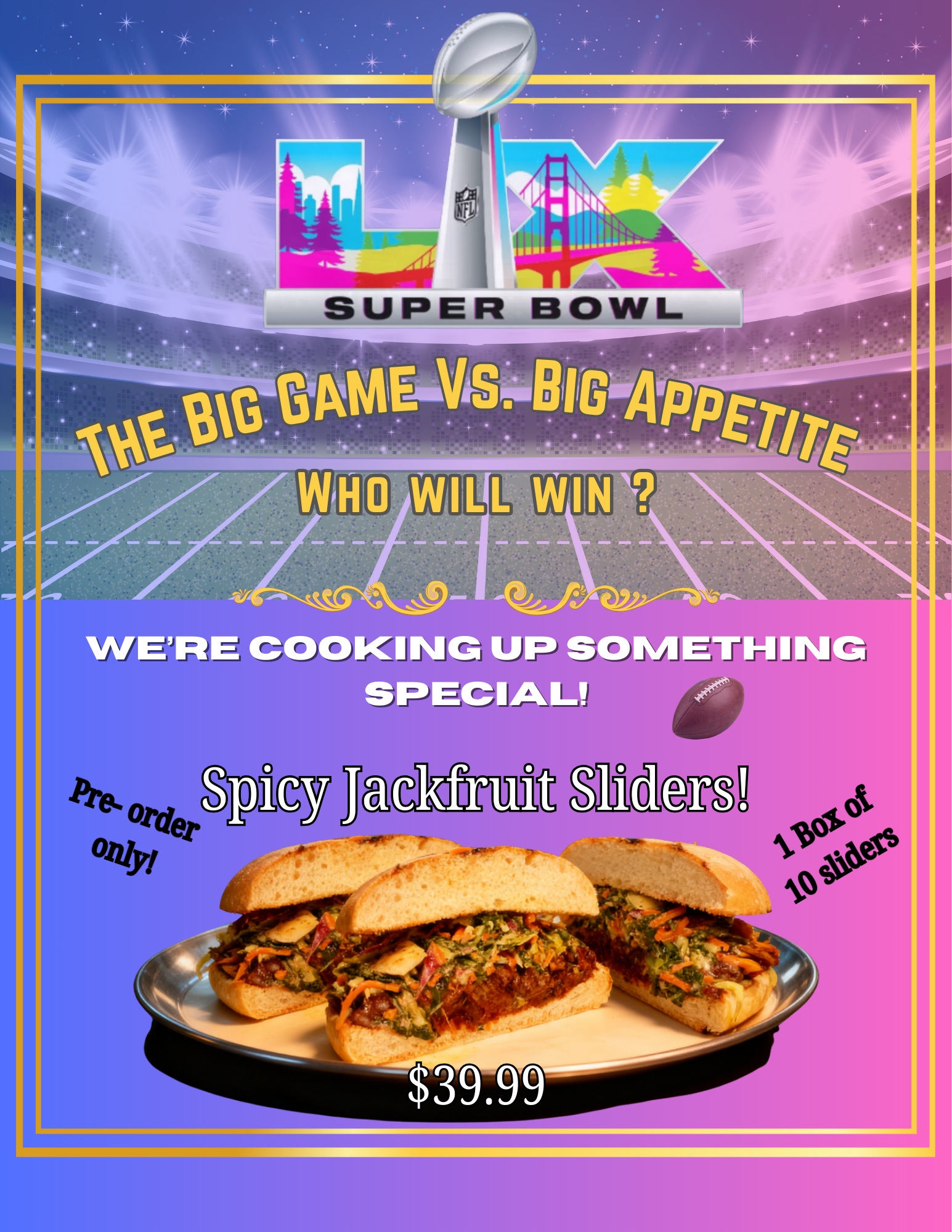 Spicy jackfruit sliders stacked with crisp coleslaw, made from wholesome, clean ingredients. Grab a box...