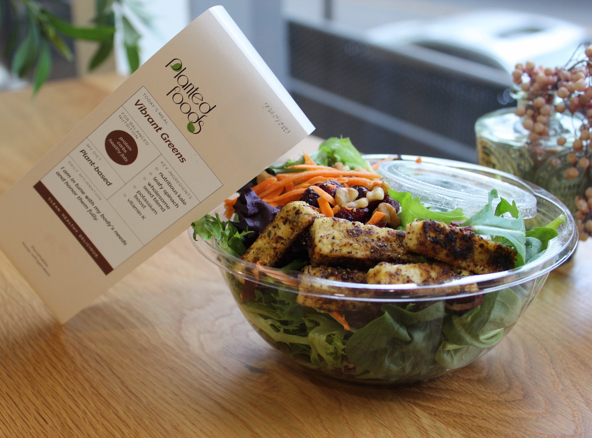 Tofu Squares. Walnuts. Cranberries. House-Made White Balsamic Dressing.